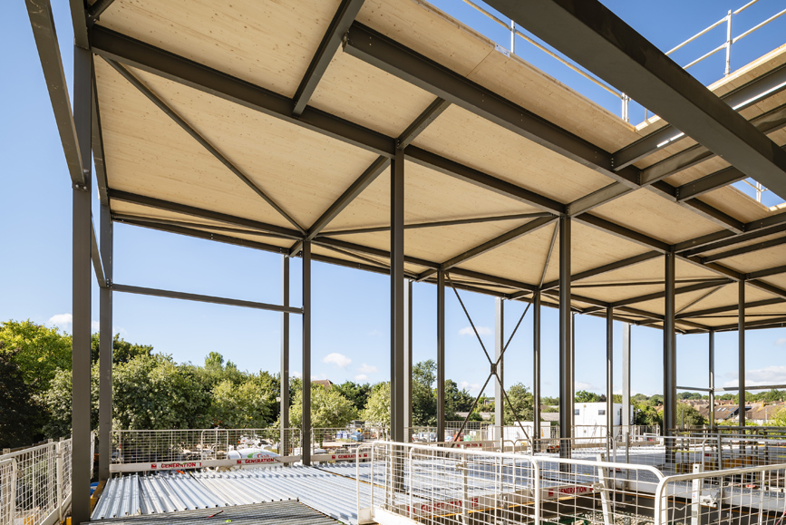 Leveraging offsite manufacturing techniques was a key part of the project delivery, to ensure millimetre accuracy, minimise waste, and reduce on-site build times. The prefabricated CLT and glulam components were delivered to site ready for rapid assembly, reducing construction traffic by approximately 40% compared to traditional methods.
